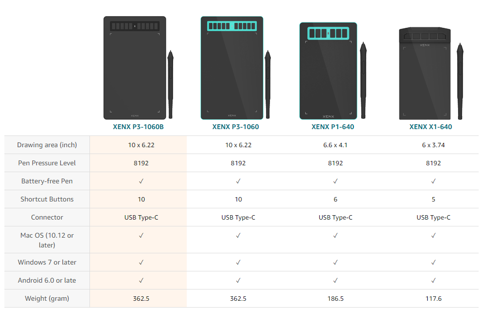 Xenx P3-1060B comes with a 10 x 6.22 inch active area provides you a larger and more precise working space. Together with paper-like overlay surface and anti-slip rubber feet, Xenx promises to bring you an excellent drawing experience.